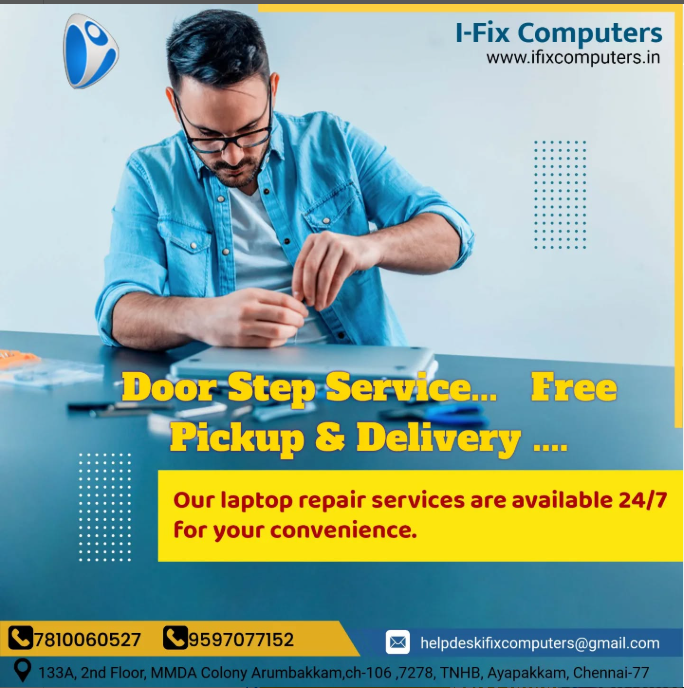 Keep your laptop running smoothly with iFix Computers Chennai — trusted experts for Laptop Door Step Service with Free Pickup & Delivery.